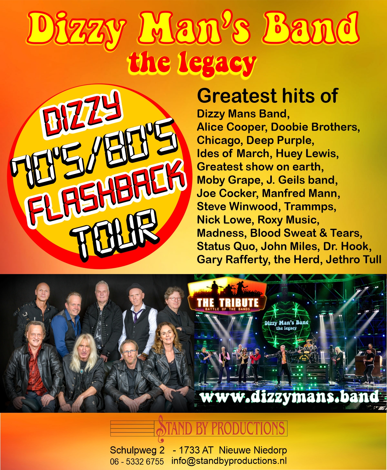 En dat alles krijgt een vervolg met een spetterende live-show van 2x 75 minuten, onder de titel Dizzy 70's/80's Flashback Tour.